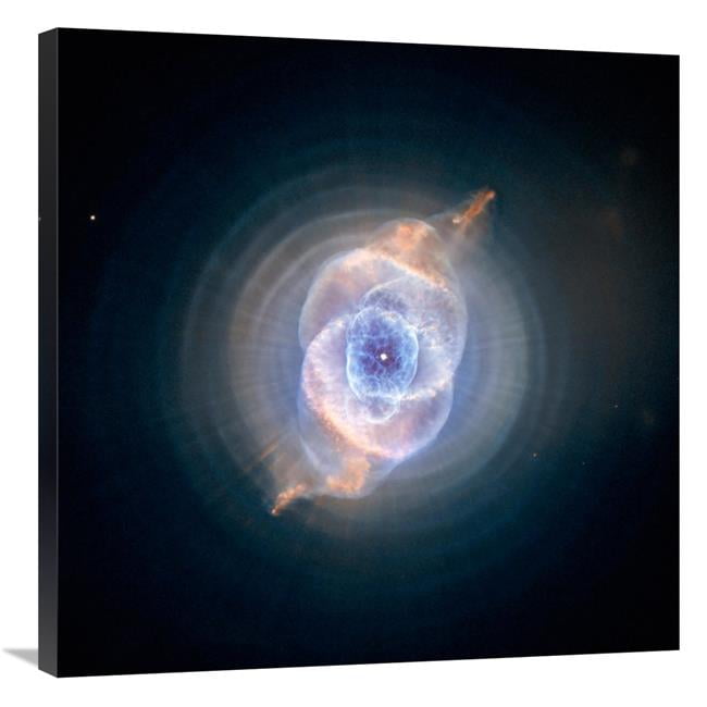 This image reveals new details of the cat's eye nebula (catalogued as ngc 6543), one. The image from hubble's advanced camera for surveys (acs) shows a bull's eye pattern of eleven or even more concentric rings, or shells, around the cat's eye. The hst images seem to indicate that the central star is actually a binary system and that the nebula we see today is actually the result of at least two separate events. It's central pnn is a hot dying star with a temperature of 80,000 kelvin. This is one of the most complex of the planetary nebulae.